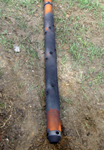 During the water environment perforator tests, the test pipe, imitating the casing pipe, is prepared; test pipe material is of any kind of steel, entrance hole diameter is between 130 and 170 mm, wall thickness – more than 5 mm; length not less than perforator length. One of the pipe ends is pressurized.